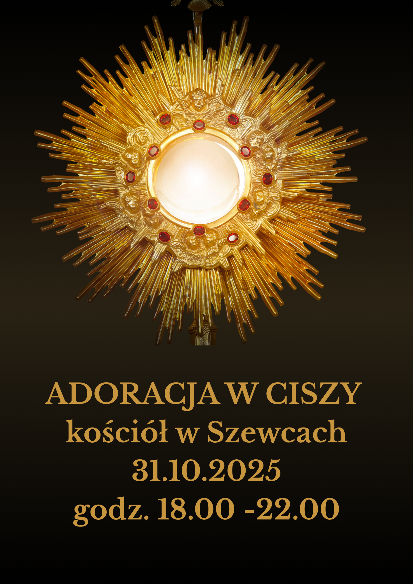 2. W piątek 31. października, w Szewcach, po mszy świętej odbędzie się Adoracja Najświętszego Sakramentu w ciszy. Potrwa do godziny 22.00.